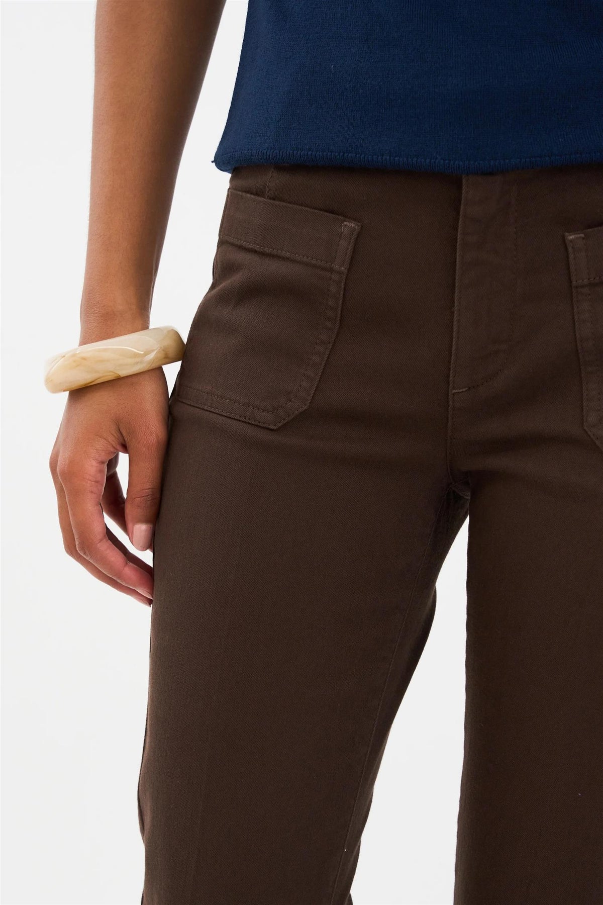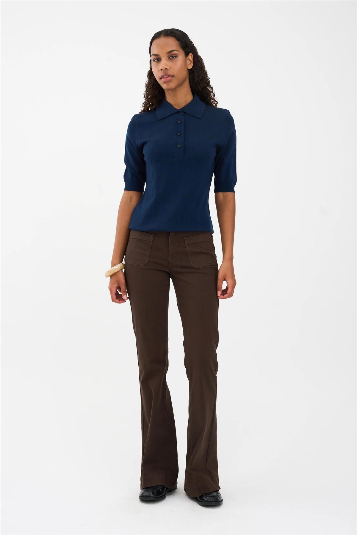 Den distinkte vide åpningen ved falden og de stilige påsydde lommene gir en unik detalj til dette allsidige plagget. Laget av en komfortabel bomullsblanding med stretch, sikrer disse jeansene både stil og bevegelsesfrihet.